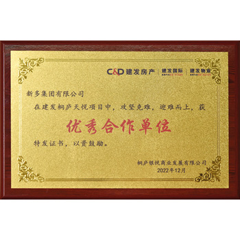 建發(fā)國(guó)際優(yōu)秀合作單位證書(shū)