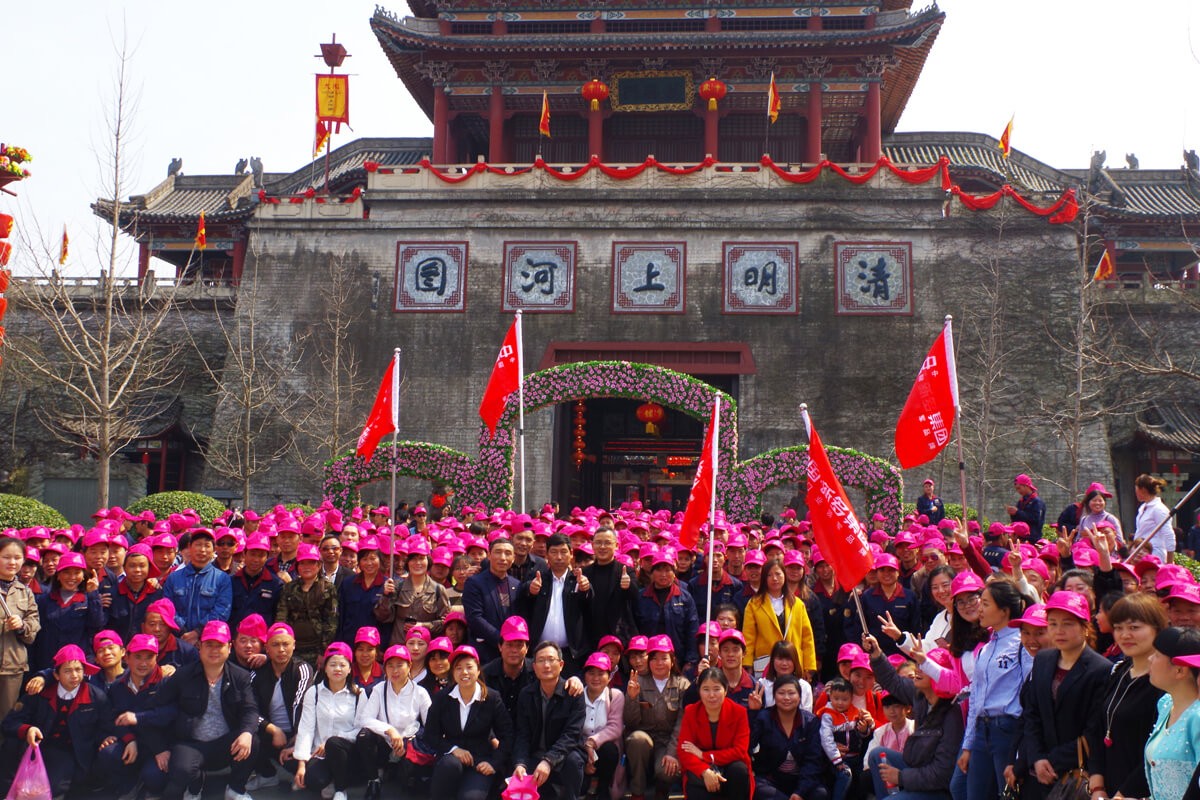 經(jīng)過1個(gè)多小時(shí)的車程到達(dá)了橫店影視城。放眼望去,碧翠環(huán)抱,陽光明媚,新多集團(tuán)全體員工們興致高昂地在導(dǎo)游的帶領(lǐng)下參觀了清明上河圖景區(qū),該景區(qū)參照宋代著名畫家張擇端繪制的《清明上河圖》長卷,斥巨資還原了宋代建筑的古樸風(fēng)貌。畫舫美麗精致、牌坊高聳林立、花卉爭奇斗艷。登上巍峨挺拔的景門城樓,近可俯瞰景區(qū)全貌,遠(yuǎn)可眺望整個(gè)橫店城。汴河蜿蜒自東而西穿城而過,河水清澈,波光粼粼。河岸柳樹成蔭,河里魚兒成群,歷歷可見,橋梁獨(dú)特壯觀。